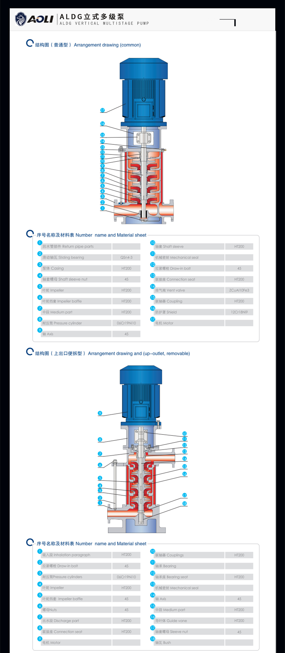 ALDG型立式多級(jí)管道多級(jí)泵是我司在國(guó)外優(yōu)秀泵型之基礎(chǔ)上結(jié)合用戶的使用要求及消防有關(guān)標(biāo)準(zhǔn),并根據(jù)JB/TQ6435-92標(biāo)準(zhǔn)設(shè)計(jì)制造的新一代產(chǎn)品。水泵吸入、排出口位于同一直線上。轉(zhuǎn)子部件由軸、葉輪、葉輪擋套、軸套等零件組成,進(jìn)水段、中段、出水段用拉緊螺栓聯(lián)結(jié)。軸封采用機(jī)械密封,用平衡室的壓力水進(jìn)行潤(rùn)滑和冷卻。是各大行業(yè)冷熱水或物理化學(xué)性質(zhì)類似于水等液體輸送的最佳泵型。