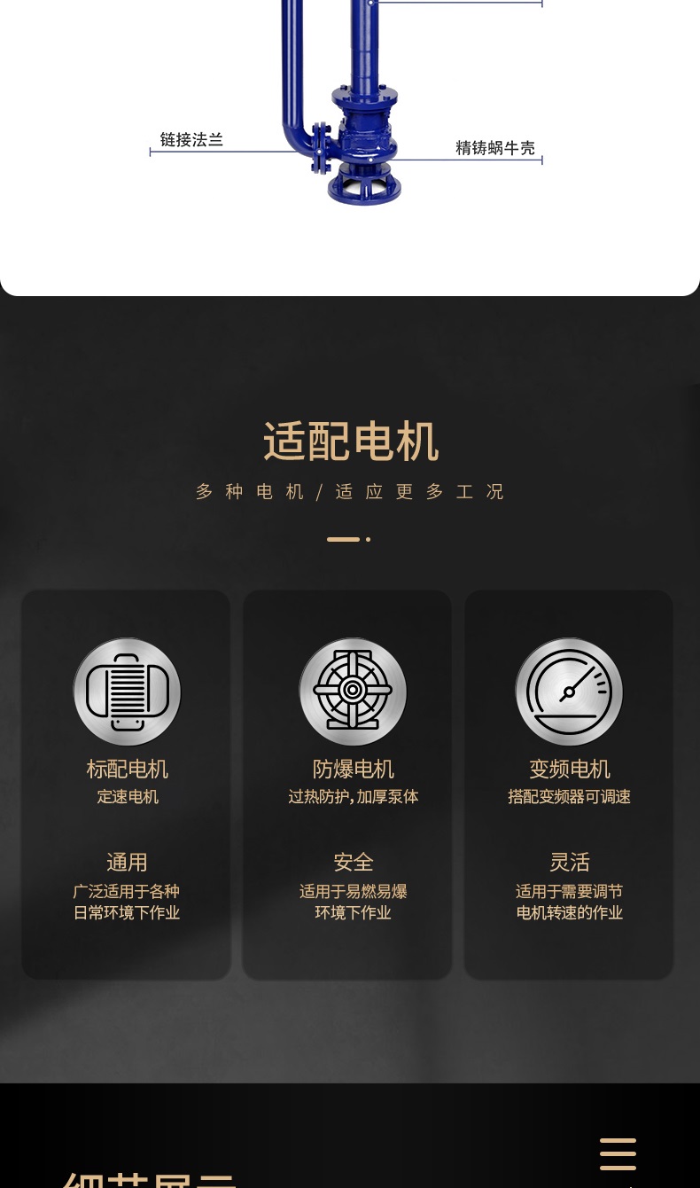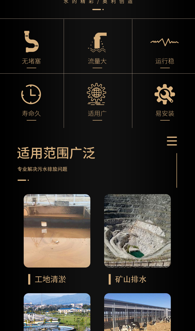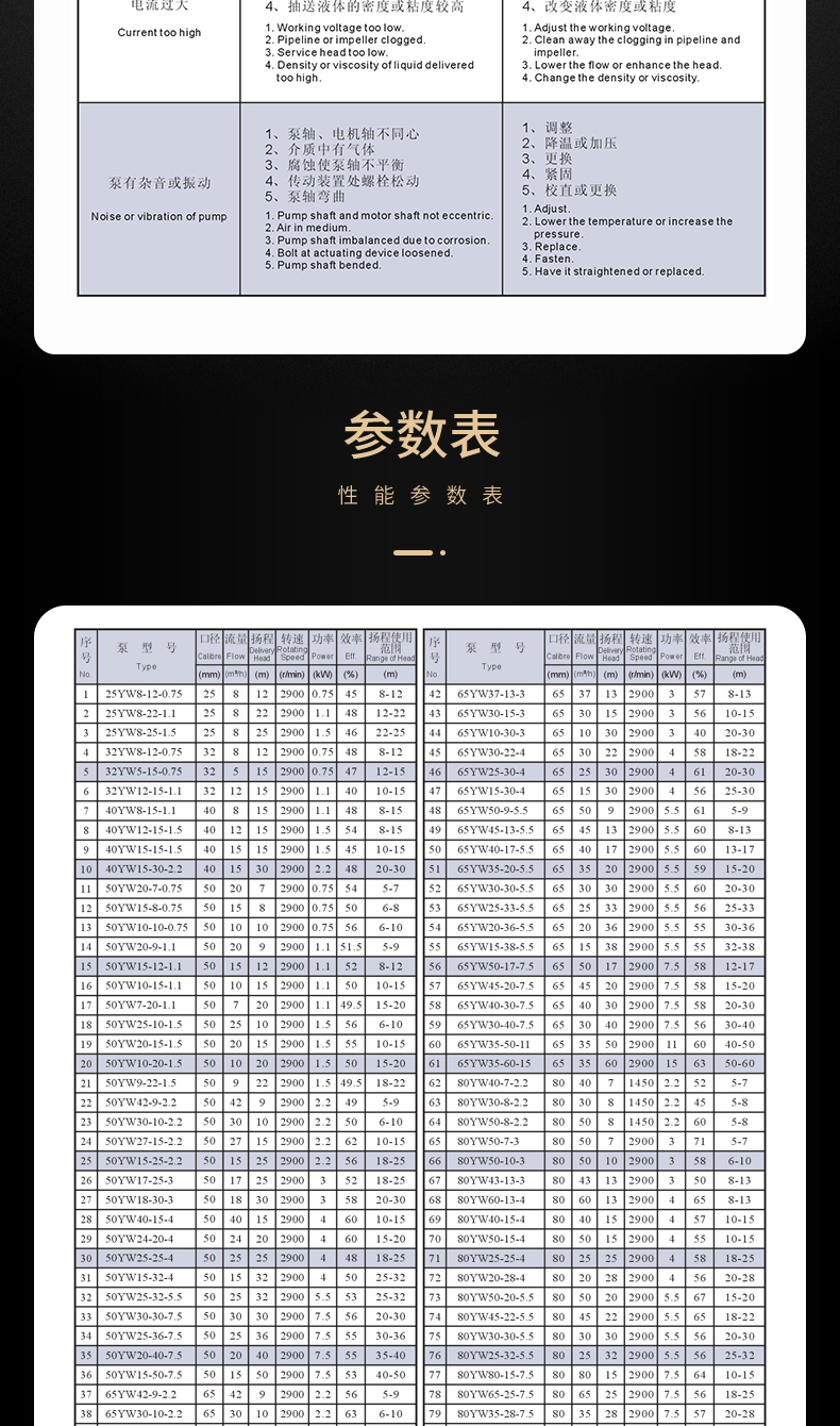 YW型無堵塞液下排污泵是在引進(jìn)國外先進(jìn)技術(shù)的基礎(chǔ)上,結(jié)合國內(nèi)水泵的使用特點而研制成功的新一代泵類產(chǎn)品,具有節(jié)能效果顯著、防纏繞、無堵塞、自動安裝和自動控制等特點。在排送固體顆粒和長纖維垃圾方面,具有獨特效果。該系列泵采用獨特葉輪結(jié)構(gòu)和新型機(jī)械密封,能有效地輸送含有固體物和長纖維。葉輪與傳統(tǒng)葉輪相比,該泵葉輪采用單流道或雙流道形式,它類似于一截面大小相同的彎管,具有非常好的過流性,配以合理的蝸室,使得該泵具有效率高、葉輪經(jīng)動靜平衡試驗,使泵在運行中無振動。